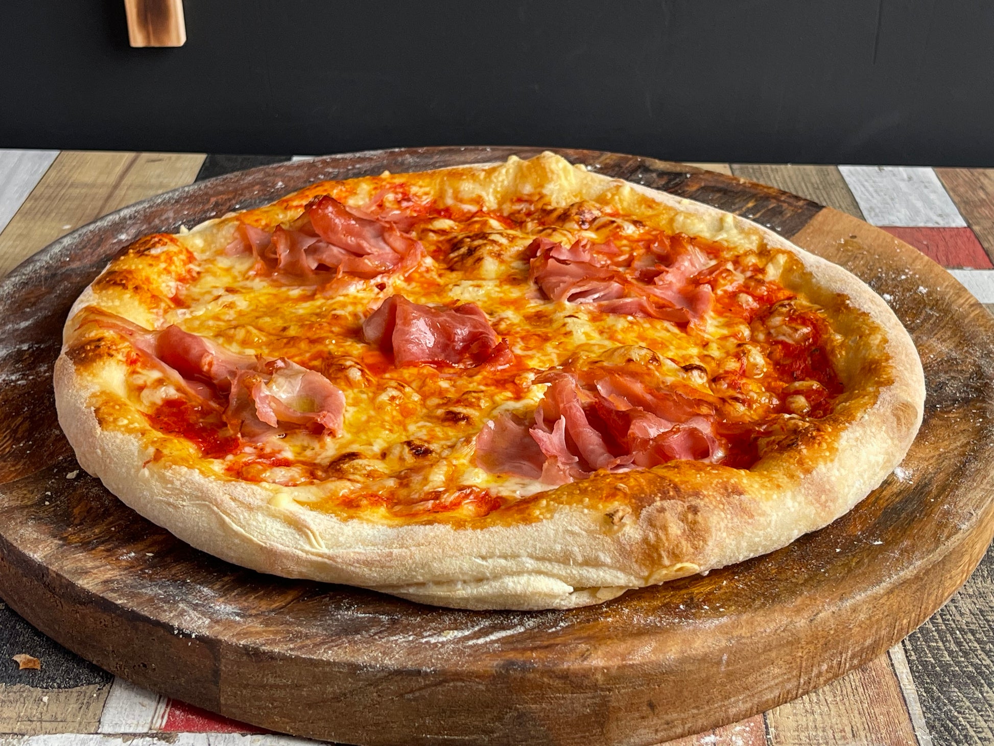 Prosciutto: Tomatensauce, Mozzarella, Schinken